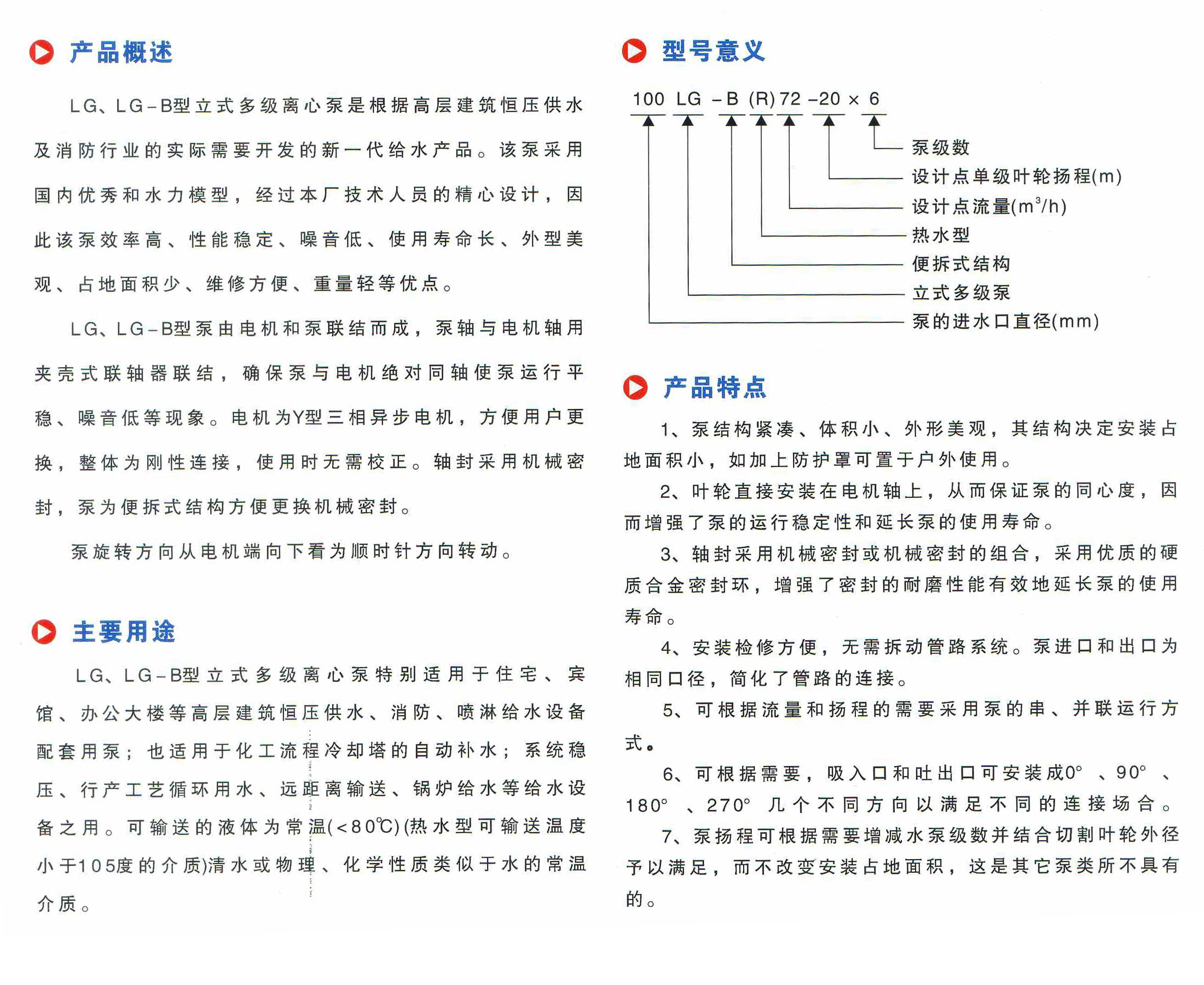 LG-B型立式多級(jí)離心泵